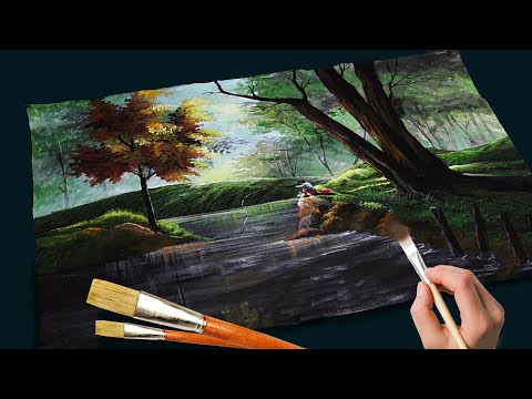 Acrylic Landscape Painting Tutorial /Man Fishing on the River/PAINT WITH...